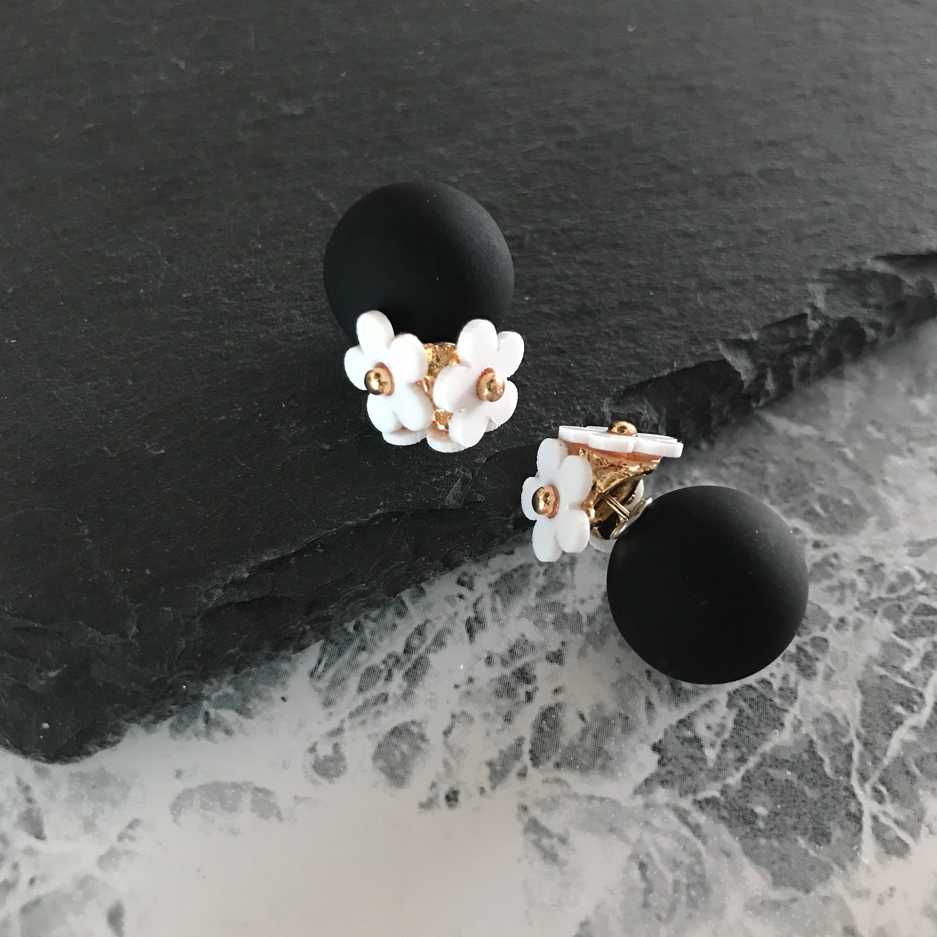 モノトーンの組み合わせが可愛いフラワーボールピアスです。