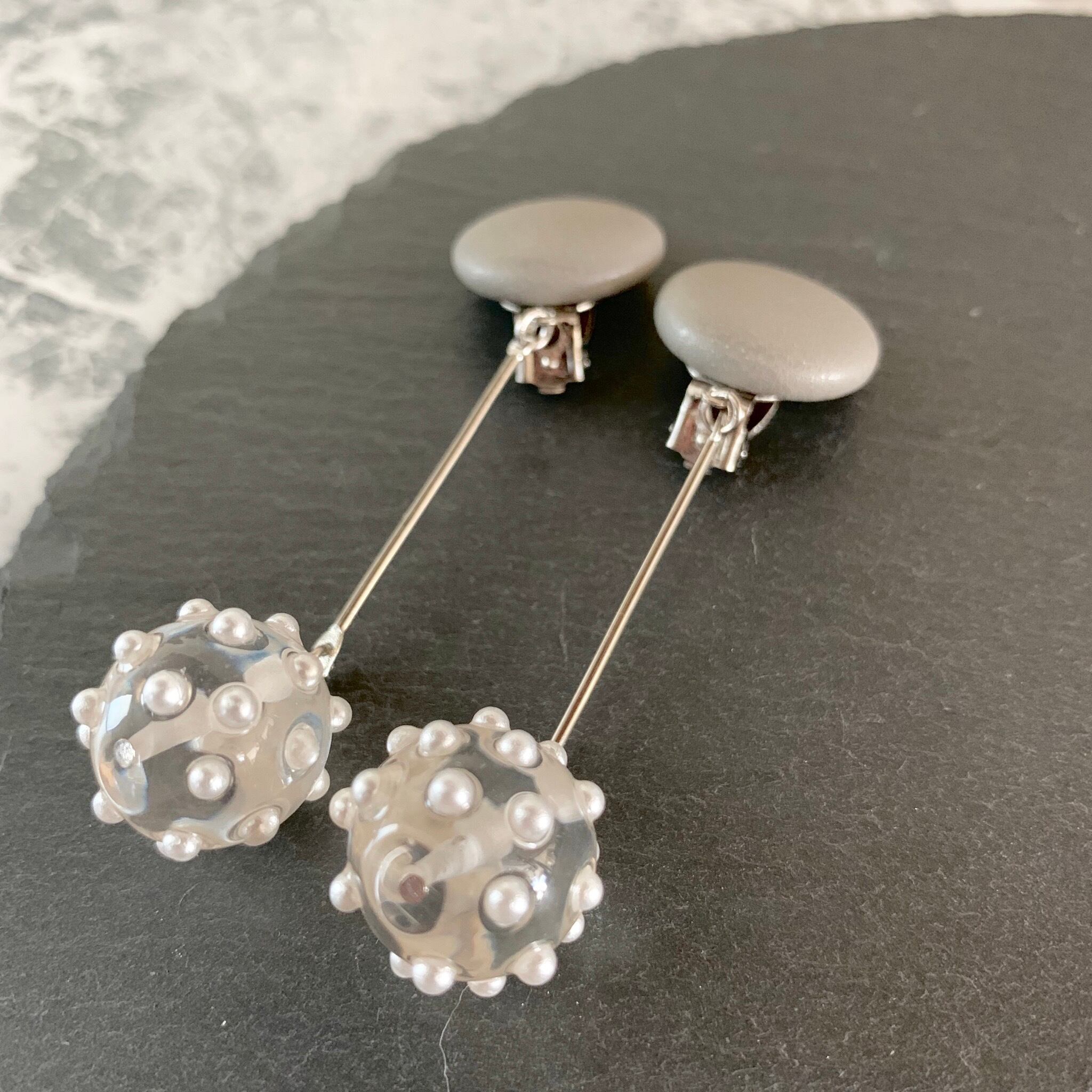 つぶつぶパールが埋め込まれたクリアボールの組み合わせが可愛いピアス/イヤリングです。(画像はイヤリングタイプです)