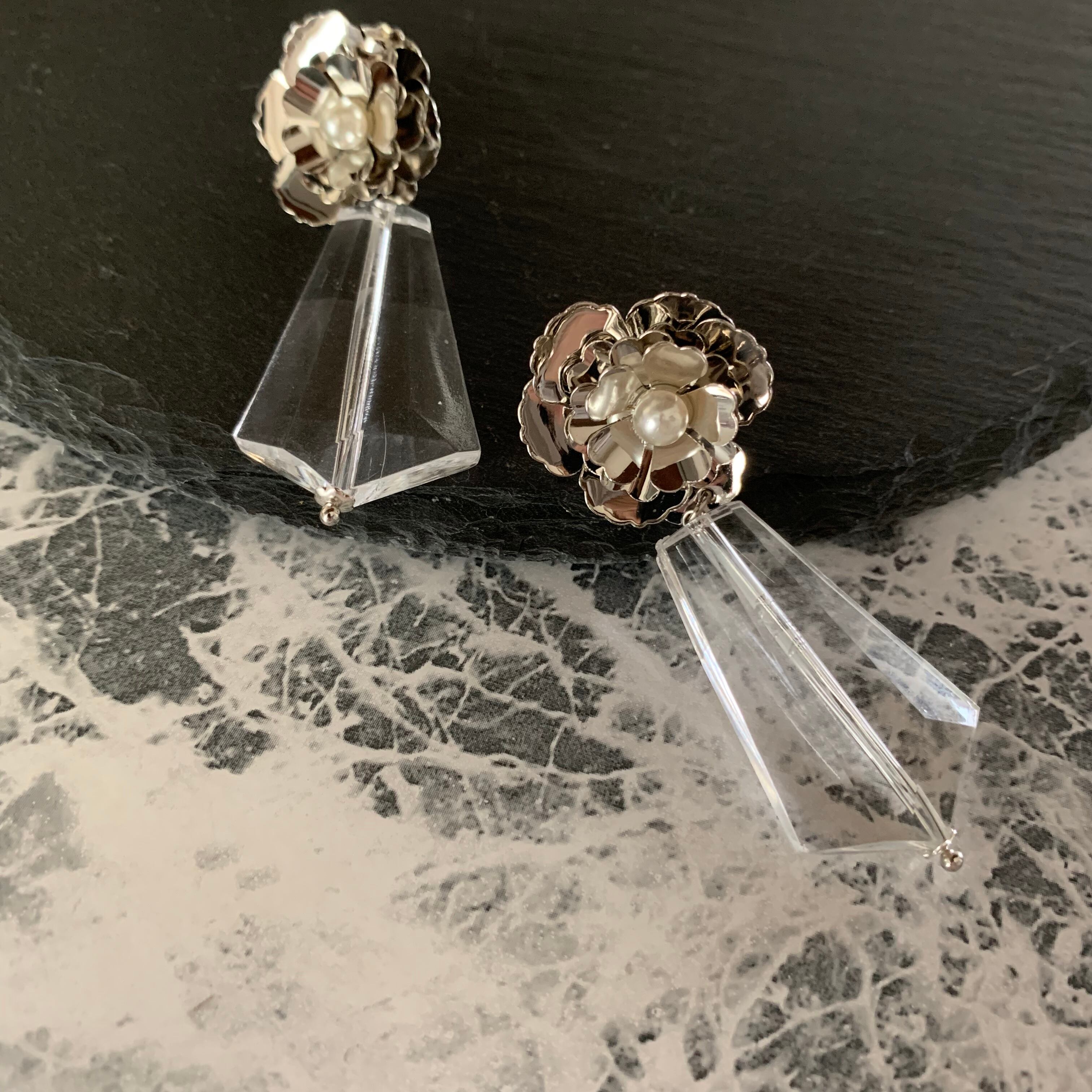 メタルのフラワーデザインとクリアのアクリルパーツの組み合わせがとっても可愛いです♡
