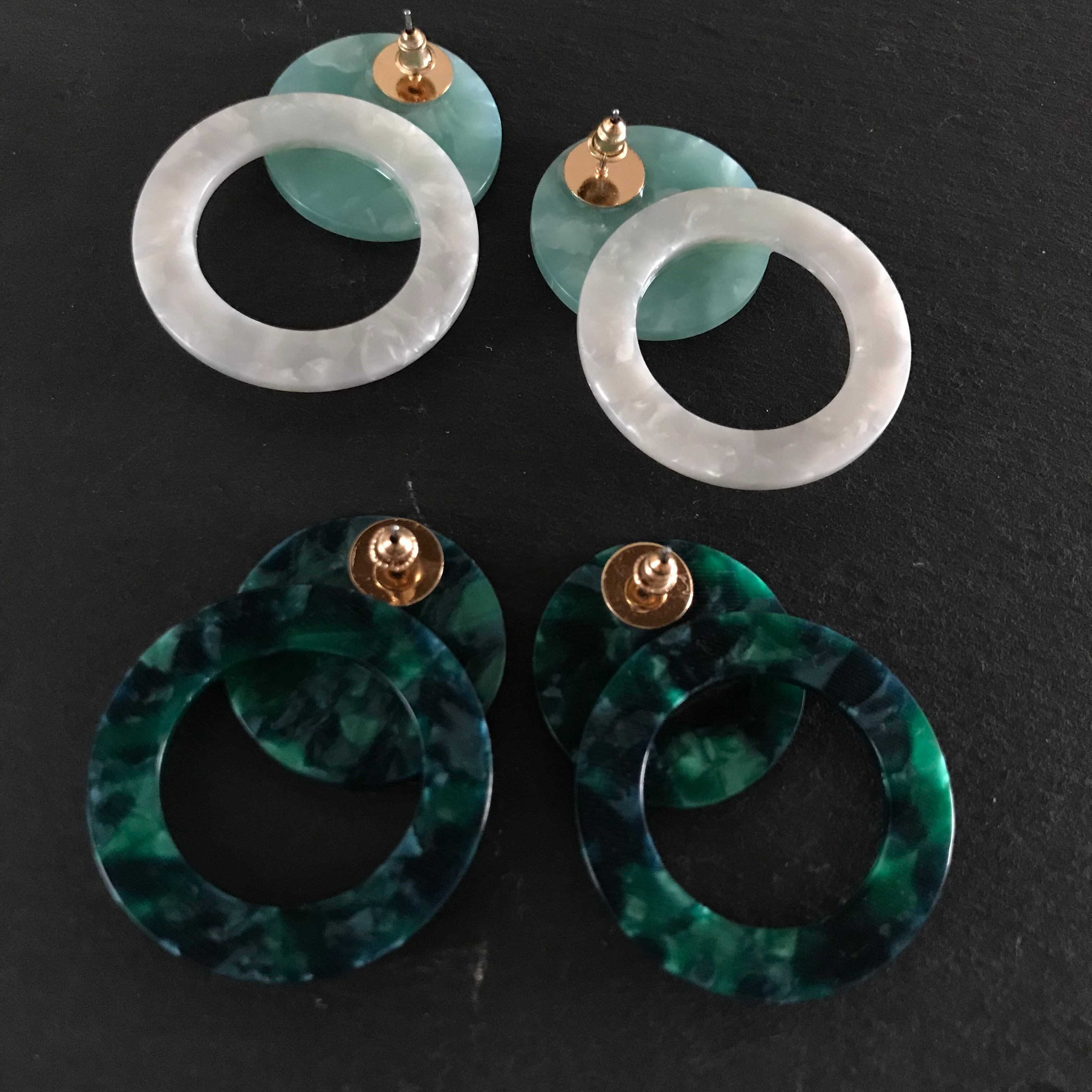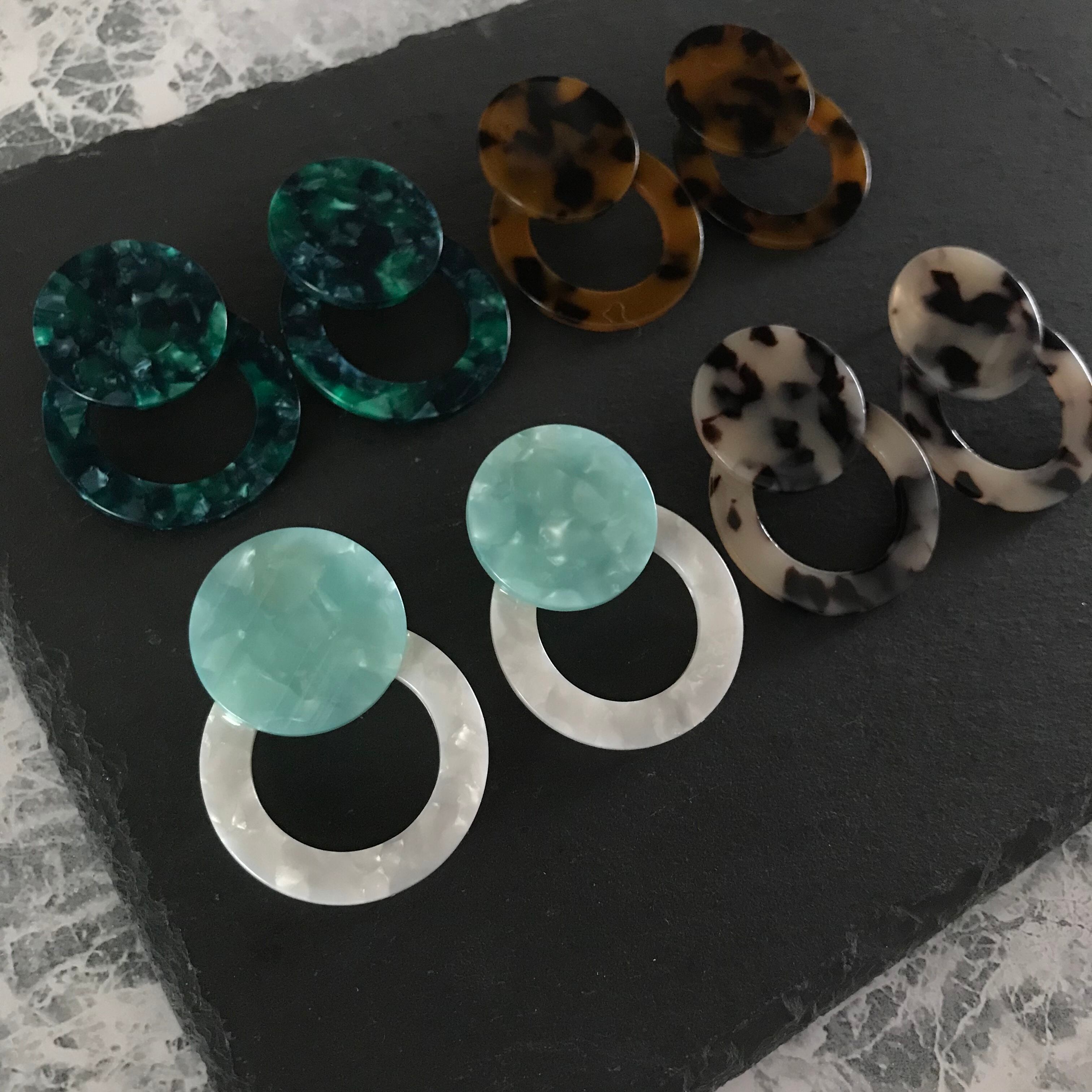4色(ライトブルー×ホワイト、グリーン、べっ甲、ベージュレオパード )展開です。